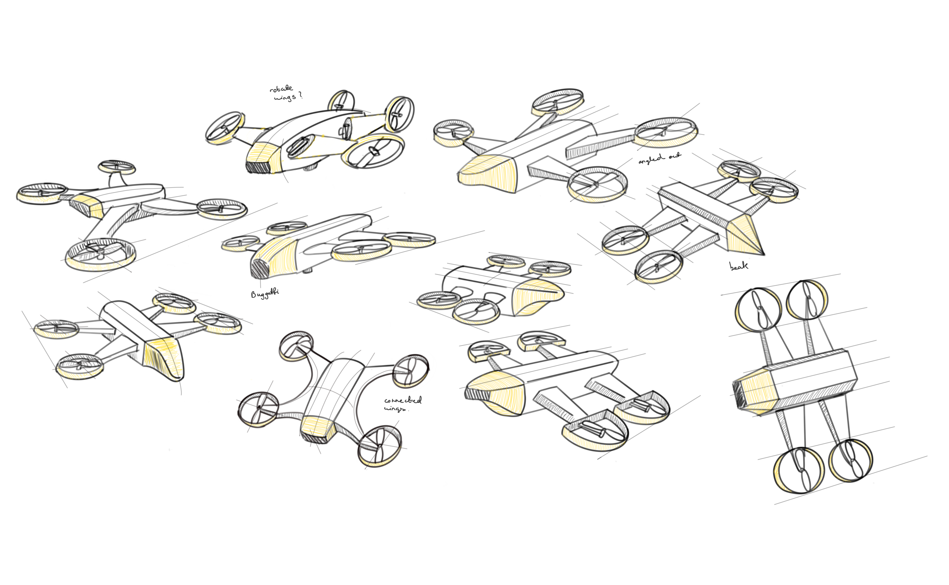 Drones in the form of quadcopters have become increasingly popular in recent years. As well as being used as a leisure activity, they have many other applications including surveillance, product delivery, aerial video and photography, etc. Recent advances in microelectronics have facilitated the production of affordable lightweight quadcopters with accelerometers, global positioning system, cameras, etc. They are manufactured in a variety of forms and sizes and many are novel in design. Develop and graphically communicate a new concept design for a quadcopter based on a selected theme or target market.