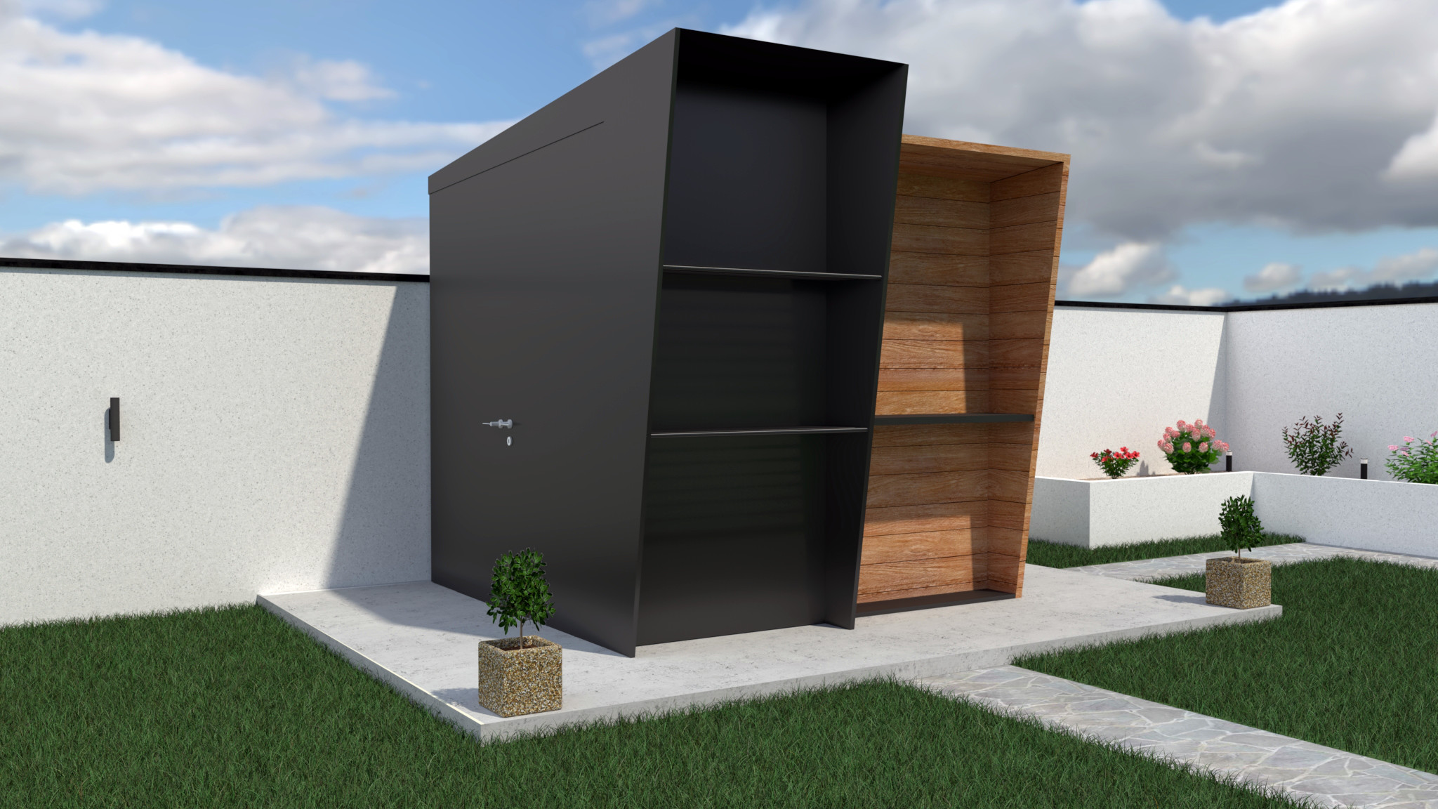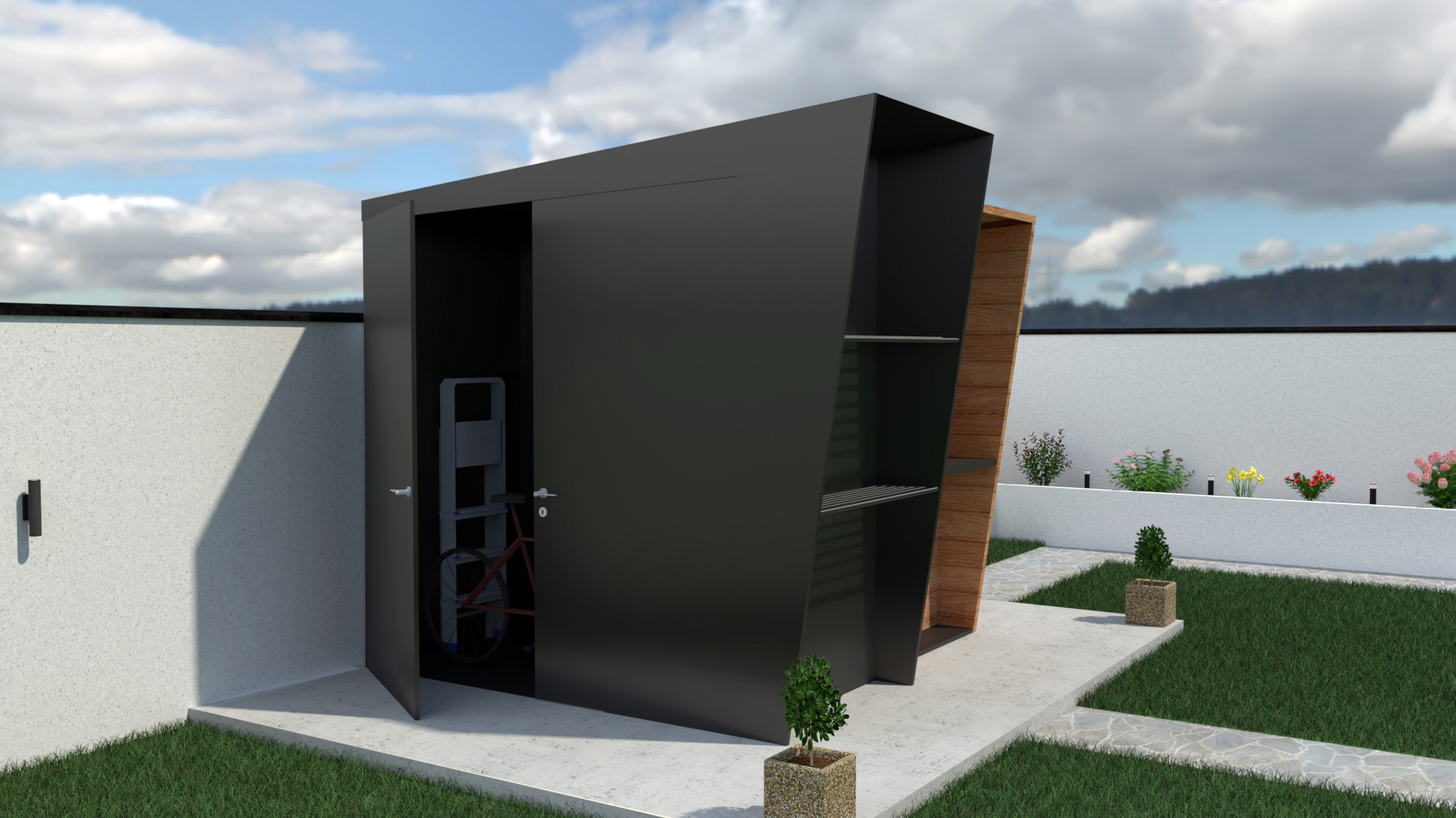 The Gartenberg is a compact, modern, family garden structure that features a workspace, storage section and clothes drying area.